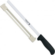 This protector not only allows you to obtain thin and uniform slices of ham, but also prevents accidents caused by the ham knife slipping during use. It is made of Teflon, is lightweight, washable and resistant, and is approved for food use. It can be used by both left and right handed persons, and can be easily removed to use the knife without it.