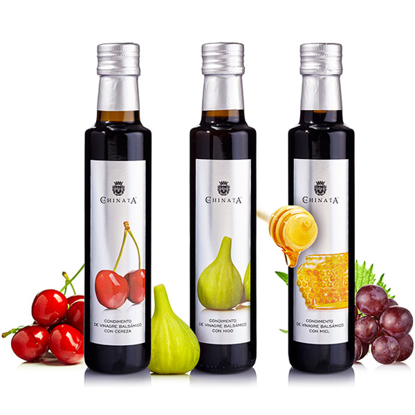 Balsamic Vinegar of Modena is the favourite for chefs to dress salads or to add a special taste to fish, meat, etc. La Chinata wanted to take advantage of the taste and quality of this vinegar, paying tribute to the land of Extremadura (Spain), and so they have soaked honey, cherries and figs in order to create an exquisite balsamic vinegar with all its properties and a special touch of flavour.